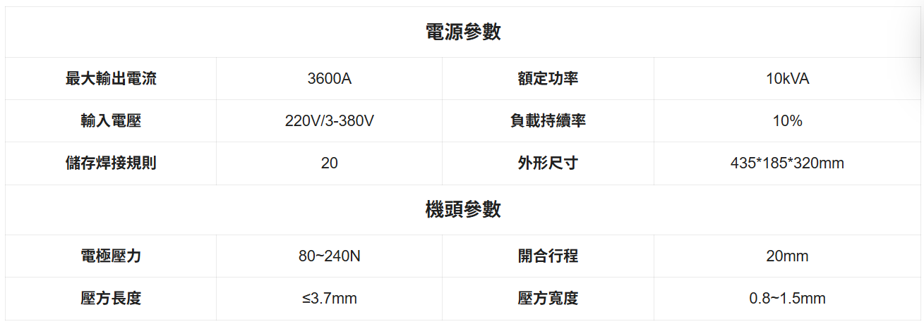 儲存焊接規範數:20