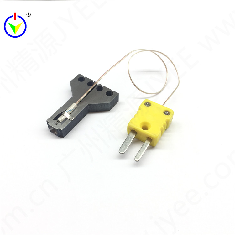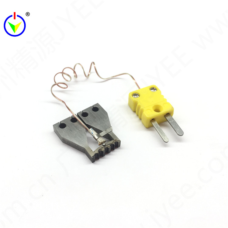 此產品是脈衝焊的加熱體,透過熱電偶回饋焊接端面的溫度,在焊接頭兩端加上適當的電流得到適當的溫度,透過焊接頭底部把熱量傳導需要結合的工件上,最終使焊接件熔接在一起,此種焊接方式對周圍元件熱影響很小。